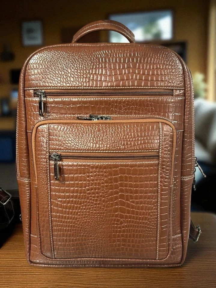 Backpack with 15.6 Inch Laptop Pocket Tan Leather Croco Travel