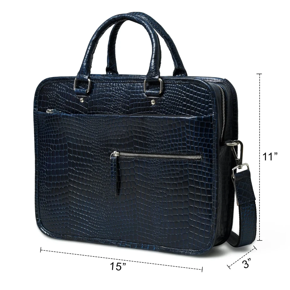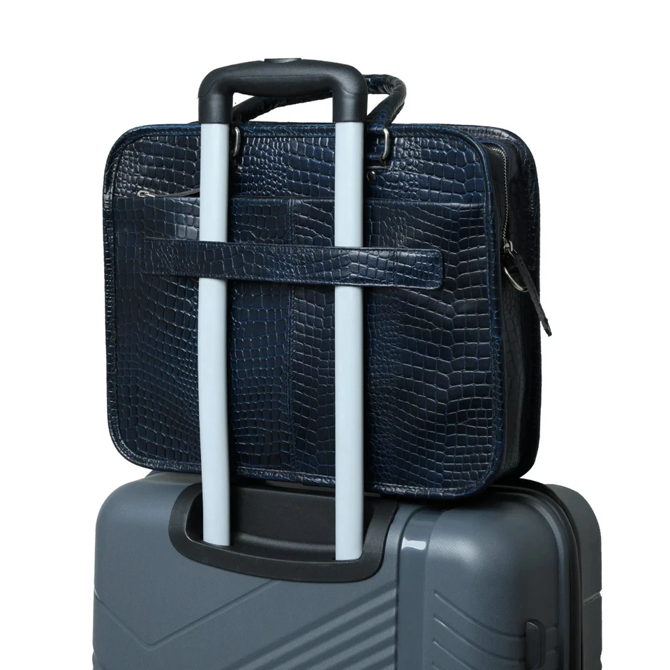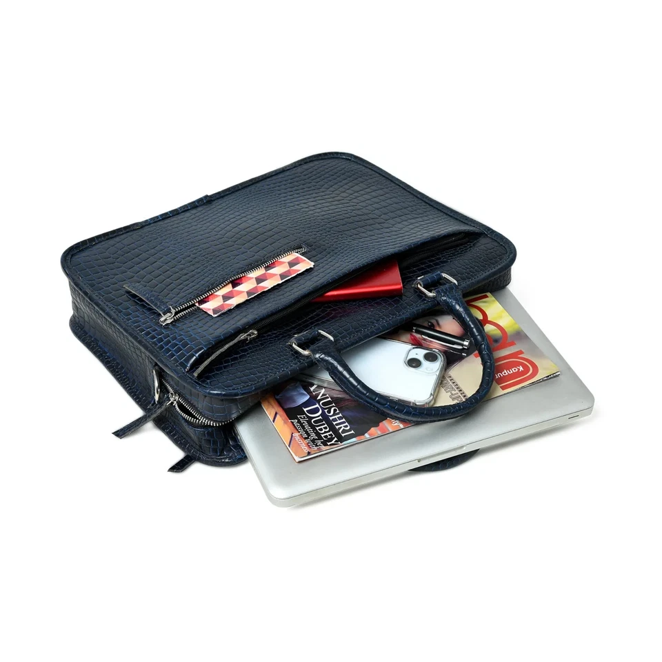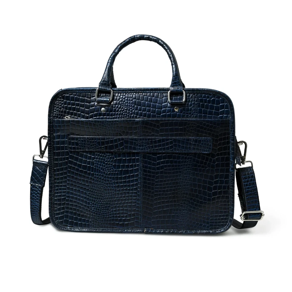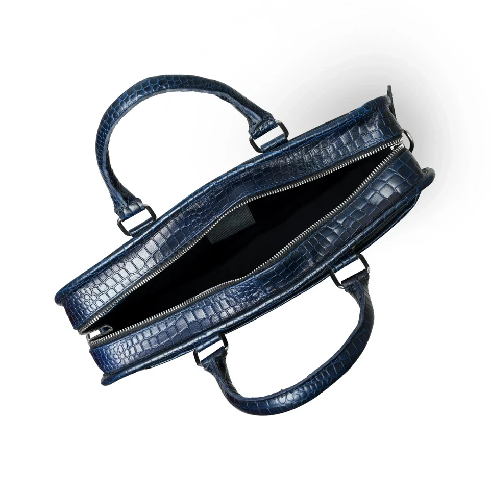 Croco Leather Office Bag Laptop Bag Blue