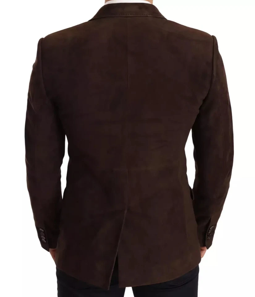 Brown Suede Double Breasted Leather Blazer