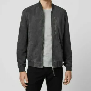 Suede Leather Men’s Bomber Jacket Gray